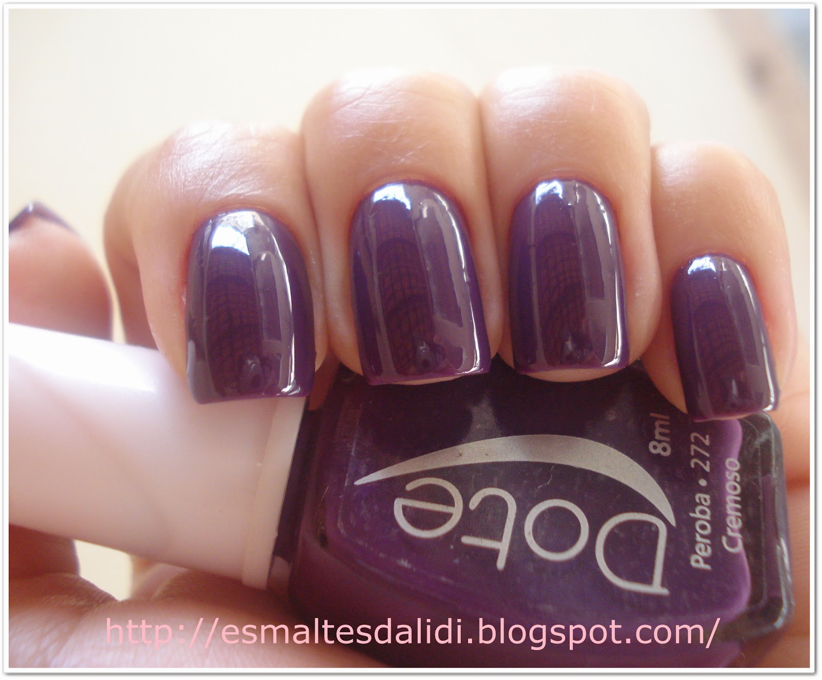 Usei o Peroba da Dote, é um roxo escuro, com um brilho legal sem top coat, mas comum a tantos que temos por aí.